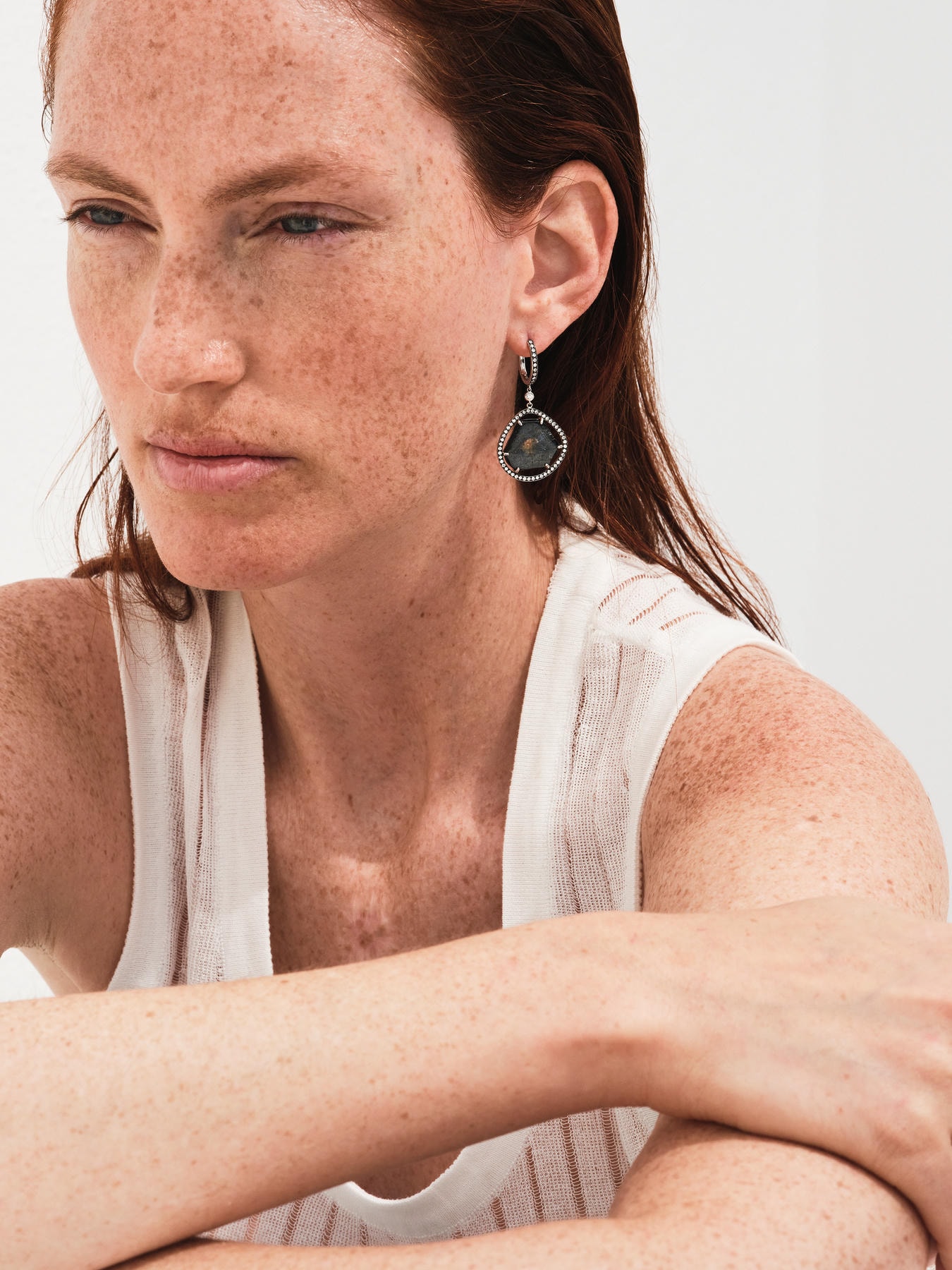 Each earring features a free-shape, root sapphire—untamed, sculptural, and utterly unique. Framed in white gold and encircled by white diamonds, the stones retain their natural form, a quiet rebellion against symmetry.