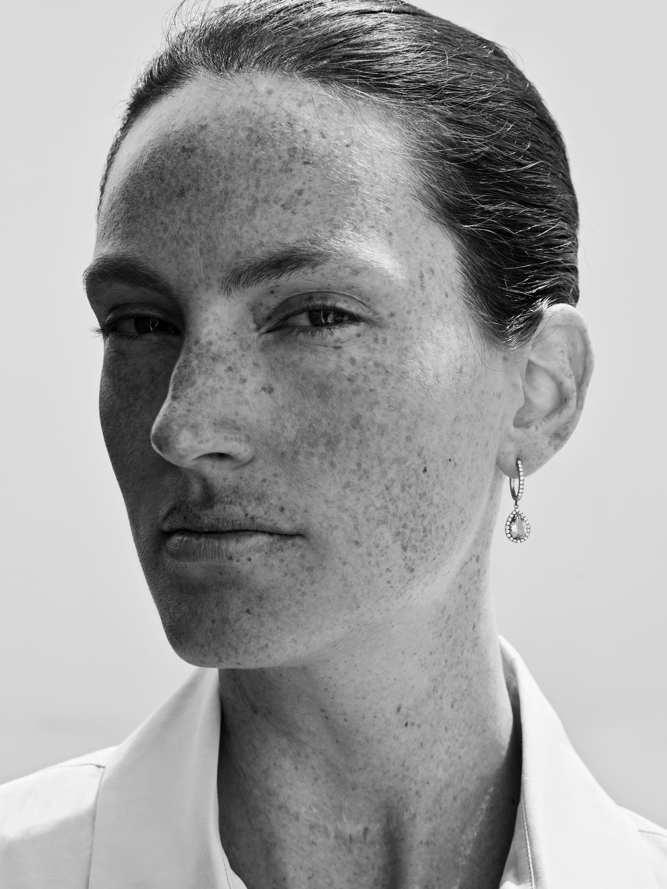 Rosée—French for “dew”—captures a moment of softness made luminous. A pair of precision-matched, pear-cut rose tourmalines is framed by fine diamond halos and suspended from slender pavé hoops. The silhouette—drop beneath arc—reads as a pure line of grace.